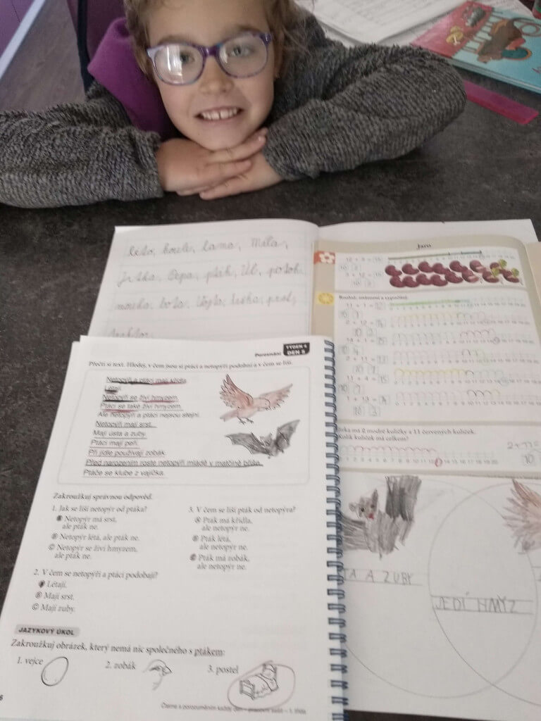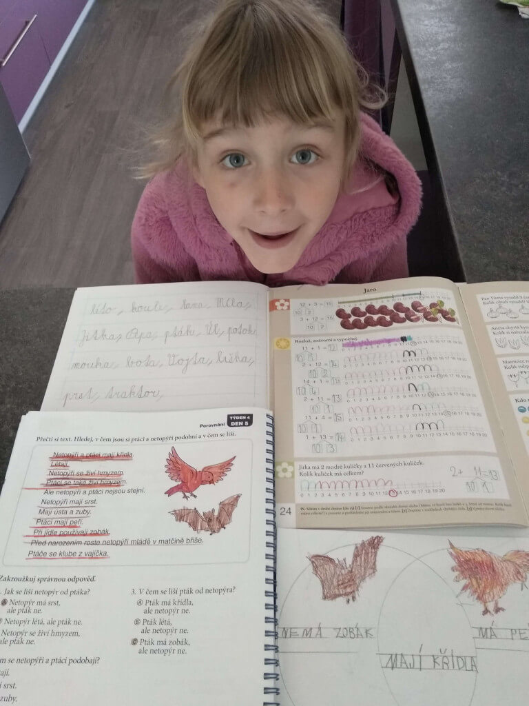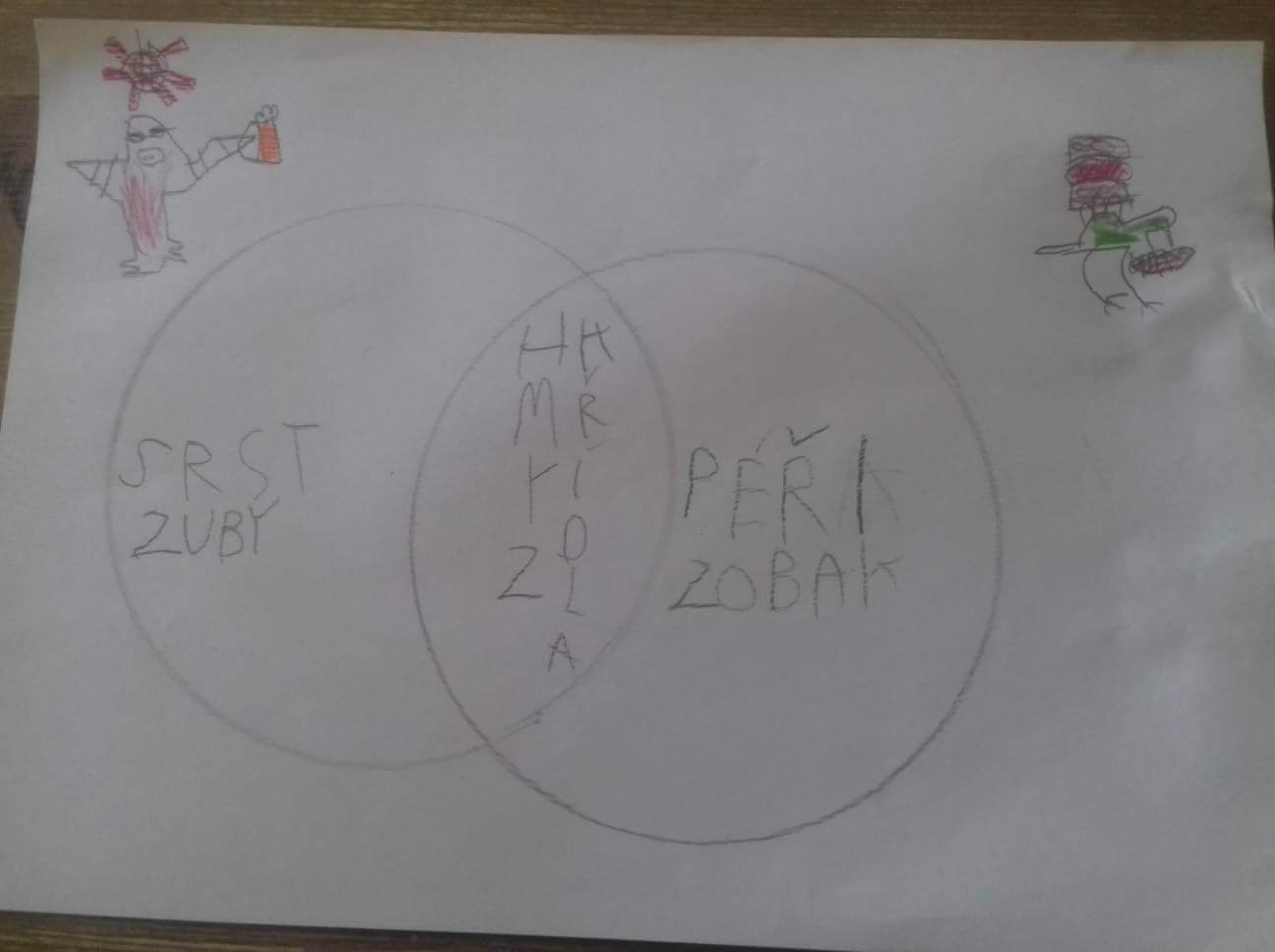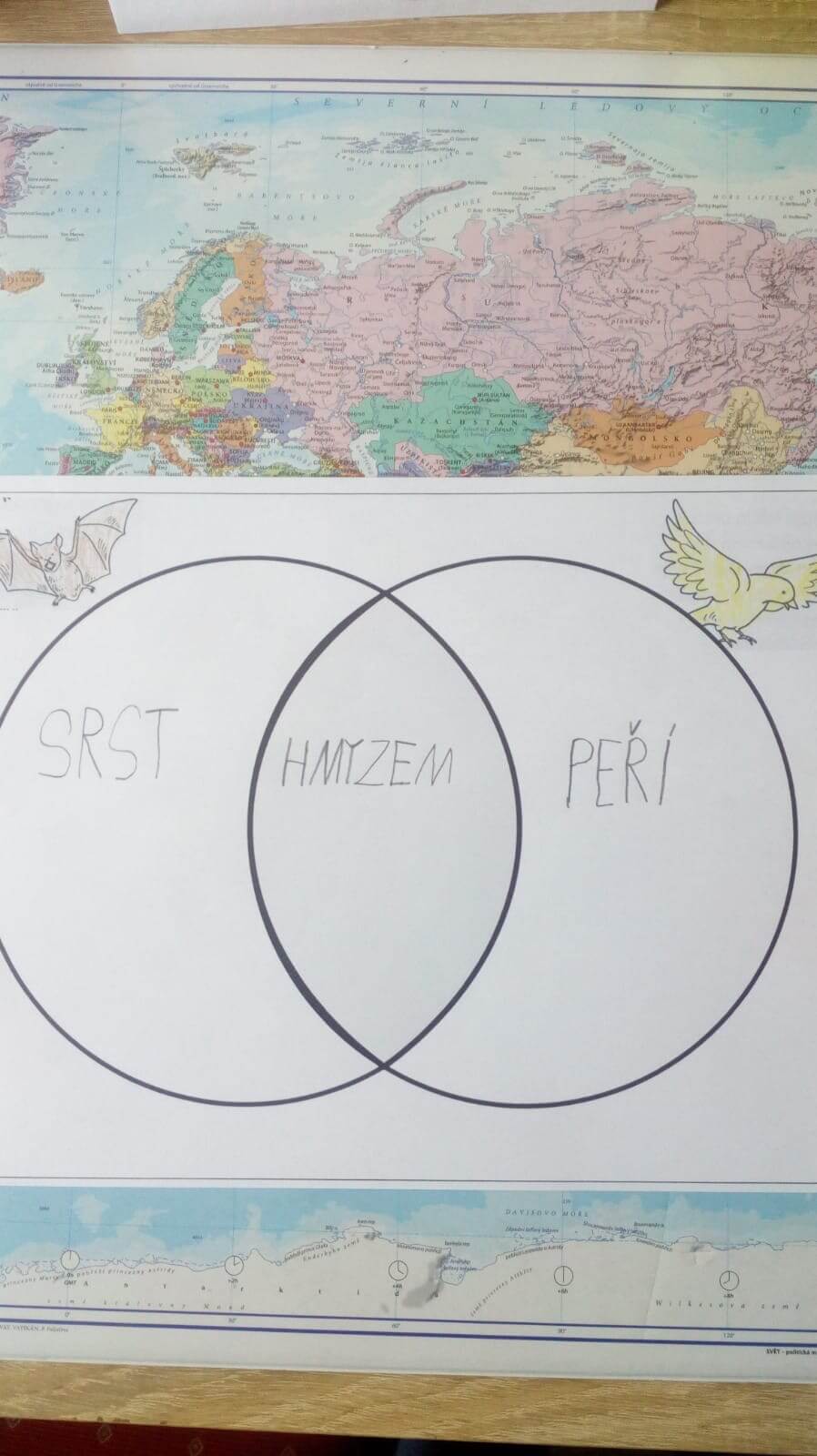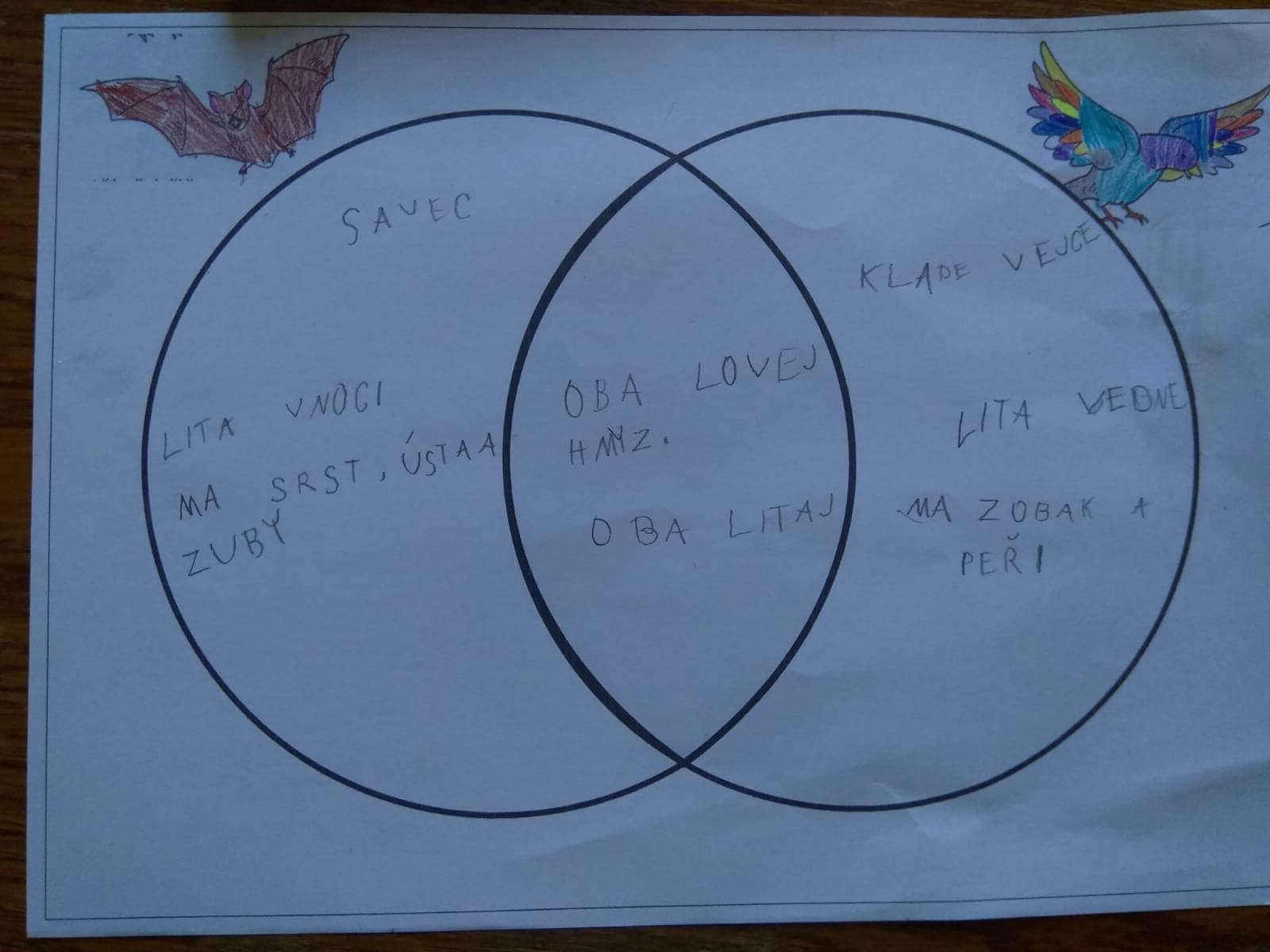 Ústně se zamyslím, co mají společného a co je rozdílné. Takto připraven jdu číst. Dvě zvolené pastelky jsou připraveny k akci. Jedna pastelka je netopýr, druhá je pták.