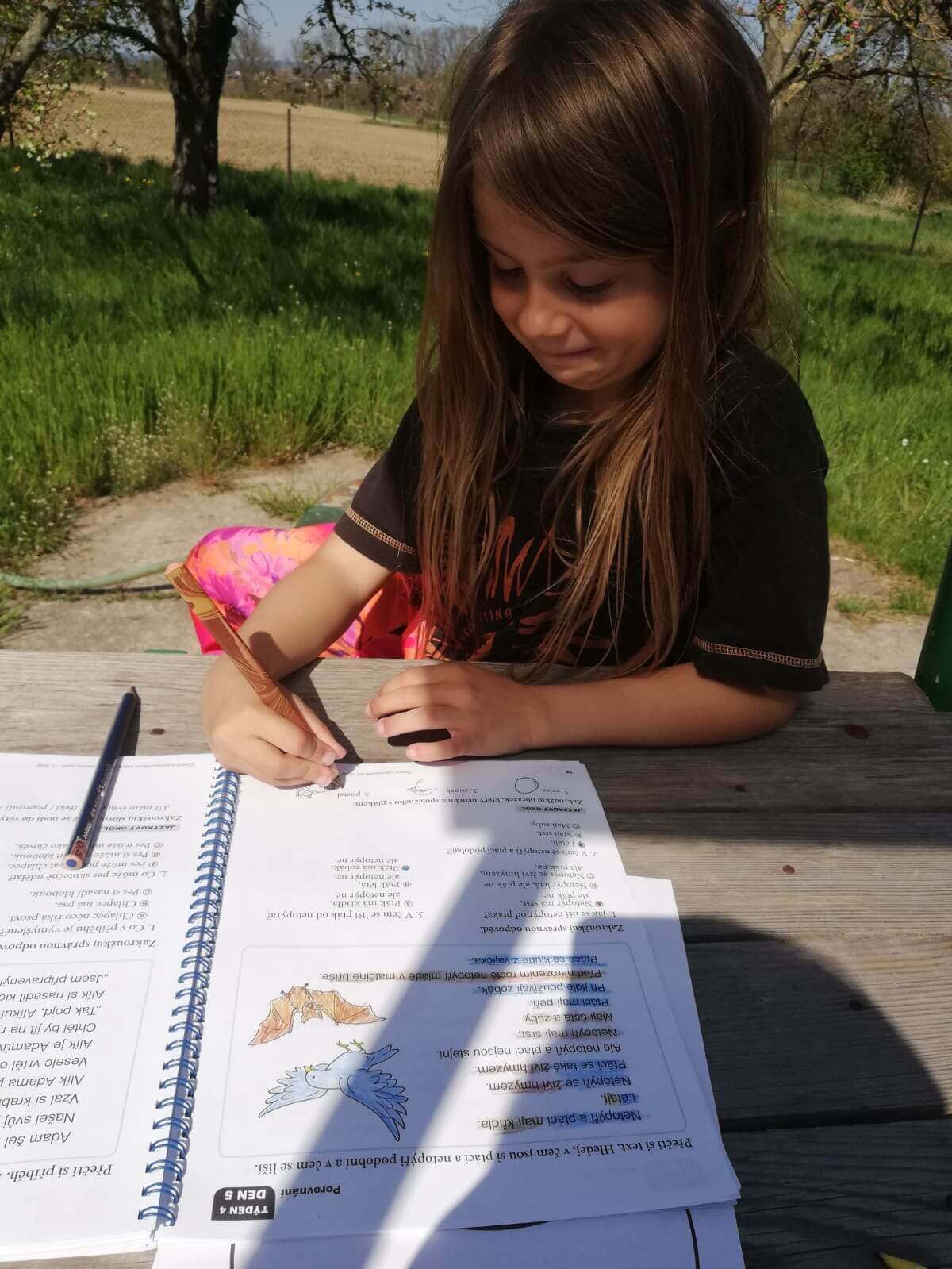 Přepis je nejtěžší psací aktivita. Dítě musí nejprve správně přečíst tiskací znak, v myšlenkách ho převést do psací podoby a potom rukou přenést na papír. Bude-li dítě tápat, nelekejte se, je to běžné, pomůžeme tím, že písmeno najdeme v písance nebo předepíšeme na papír.