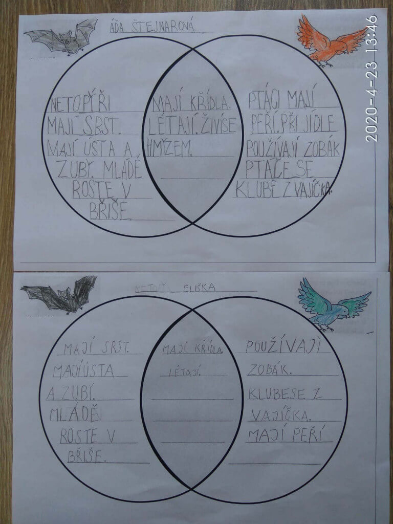 Už je to jednoduché, víme, známe. Porovnávat dnes budeme netopýry a ptáky. Práci o netopýrech v dalších dnes potom více ve čtení rozvineme…