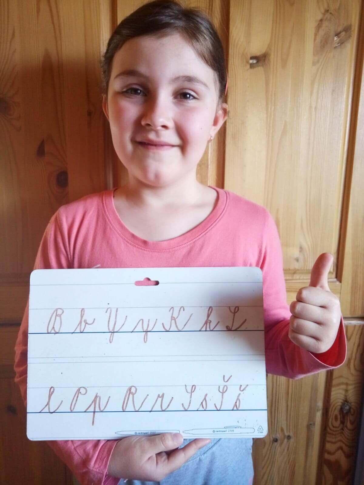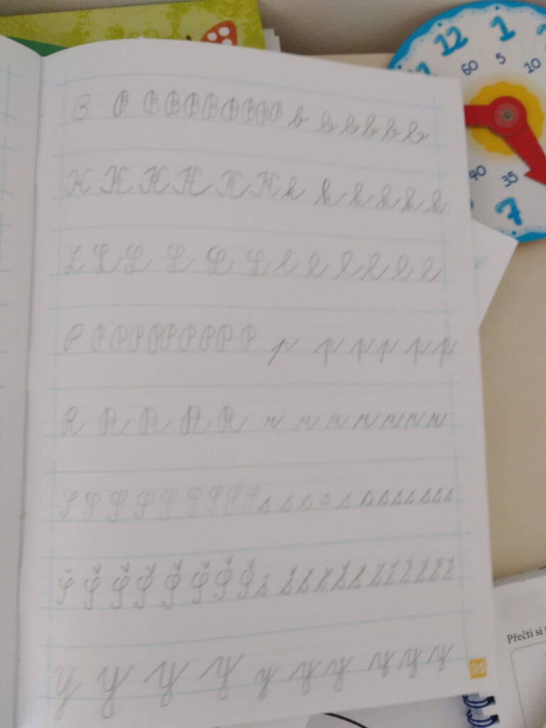 Buďme trpěliví, písmo není zafixované, nechme klidně hledat děti v písankách a přijměme fakt, že mnohé zapomněly. Těžká bude asi i orientace v liniatuře, pomáhejme, tužkou třeba i předepisujme. Cílem se opakovat.
