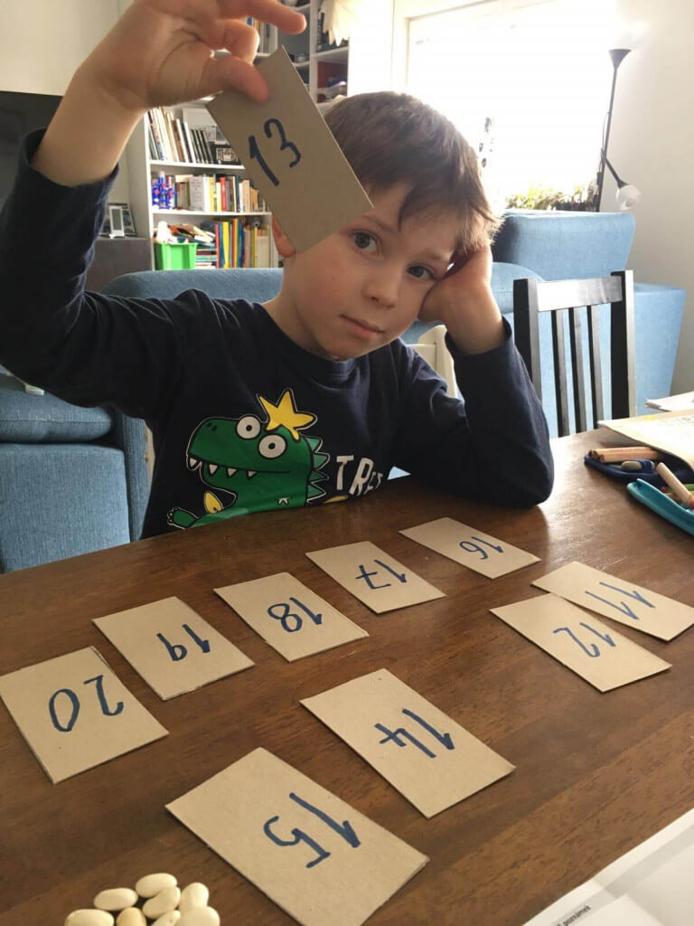 - Jmenujeme číslice, dítko zvedá odpovídající kartu