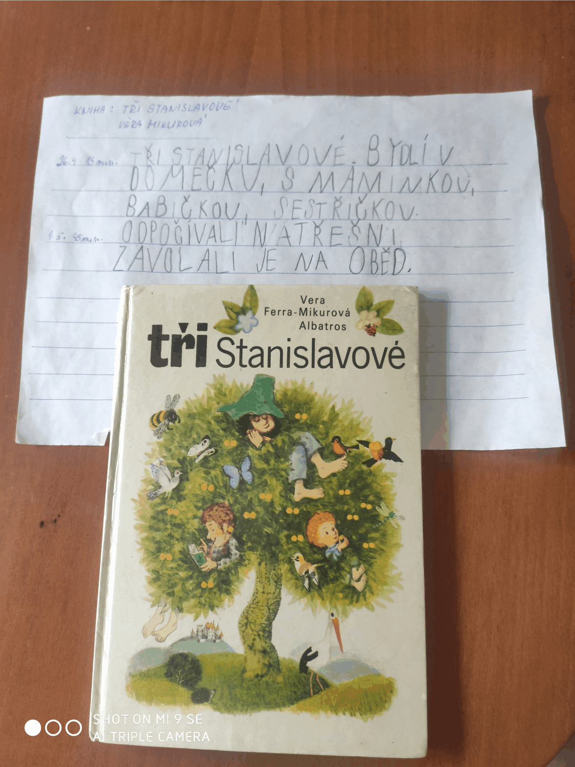 Čteme denně 10 – 15 minut, čtení zapíšeme do Času číst. Kdo má popsaný, může si vytisknout níže. Foto čtecího listu poprosím poslat ve čtvrtek na Whatsup nebo mail. Do poznámek zapisuji jednu větu, nejjednodušší je zapsat, co hrdina ten den dělal.