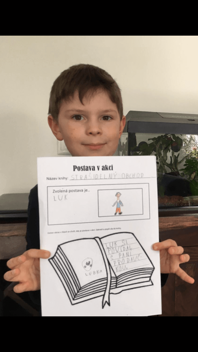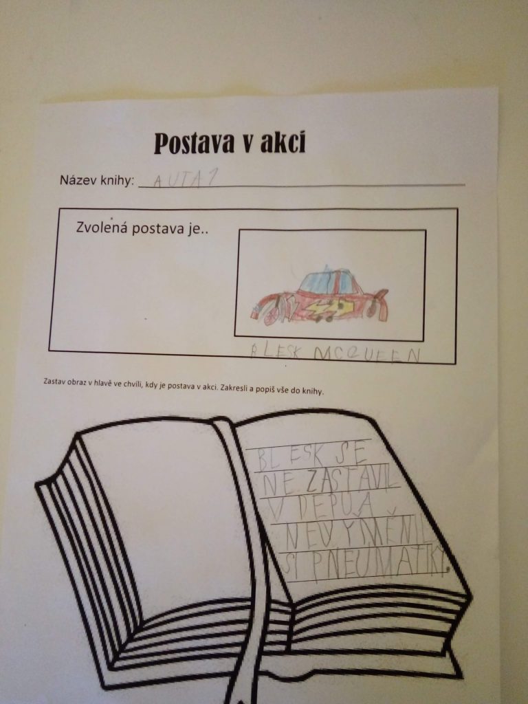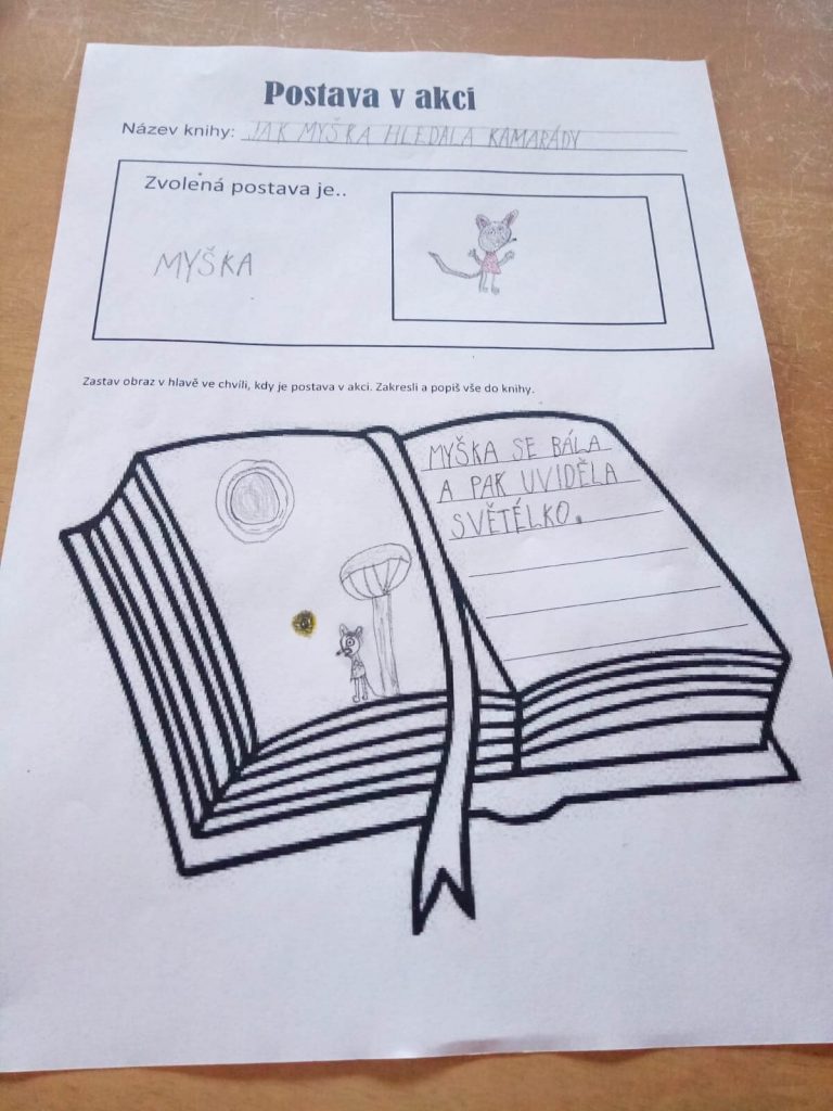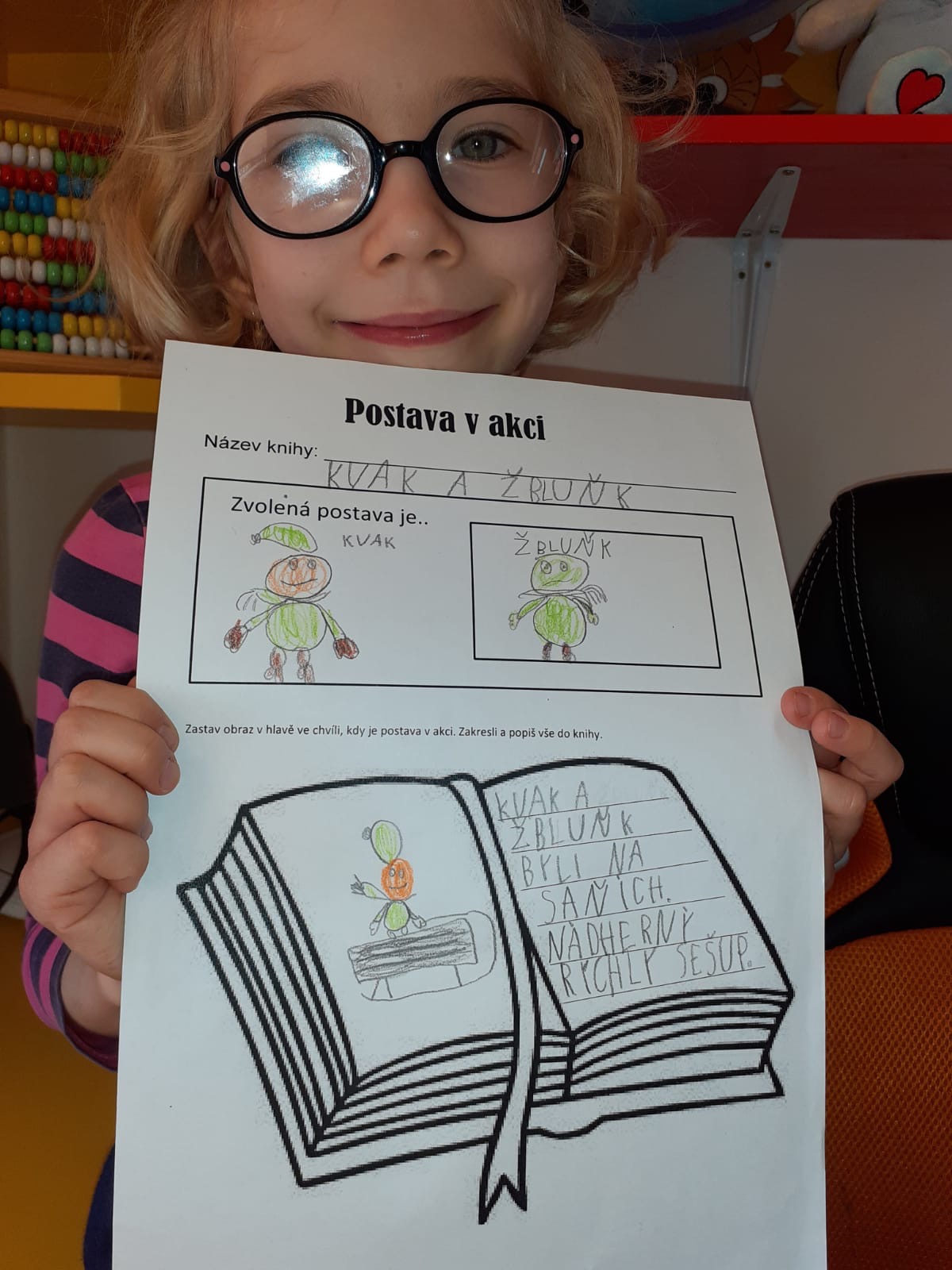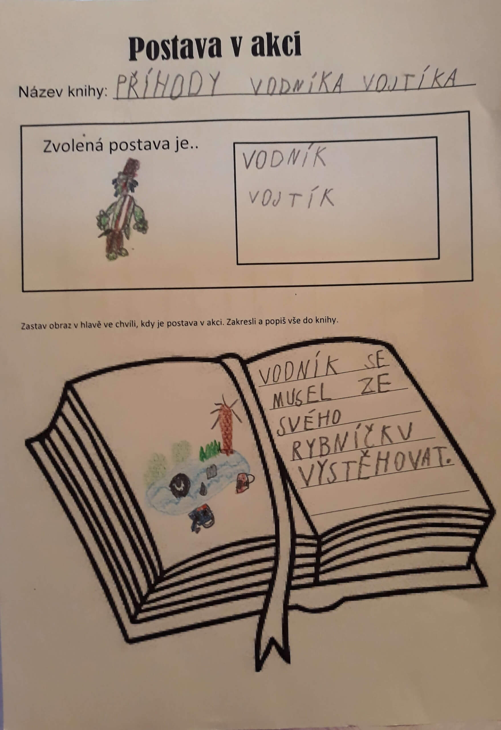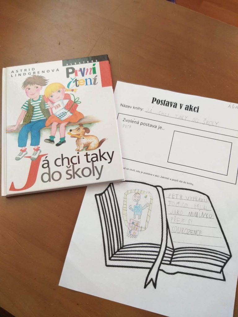 Dneska budeme číst 10 minut. Při čtení budeme sledovat hlavní postavu knihy a hodně se budeme soustředit, co postava dělá. To po čtení zaznamenáme buď do DENÍKU nebo do grafického organizéru – to je ten pracovní list POSTAVA V AKCI. Zvol si, co Ti bude vyhovovat.