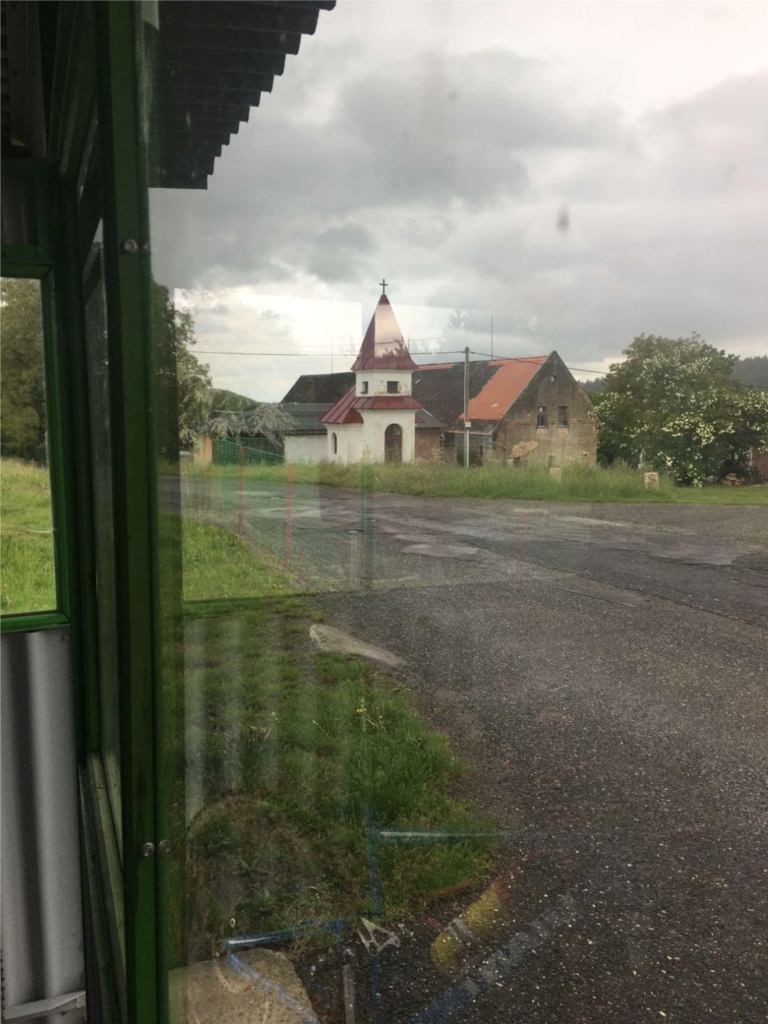 Tu jsem pořídila včera odpoledne, kdy jsem se jela projet na kole. Cestou mě chytl prudký déšť, před kterým jsem se schovala do jedné autobusové zastávky /takové té budky, jaké bývají na vsích/. Měla jsem čas rozhlédnout se kolem, kde to jsem, co vidím, a tedy právě trochu prozkoumat, jaké prostředí mě obklopuje. Kdybych vyplňovala pracovní list podle skutečnosti, napsala bych si tam toto: