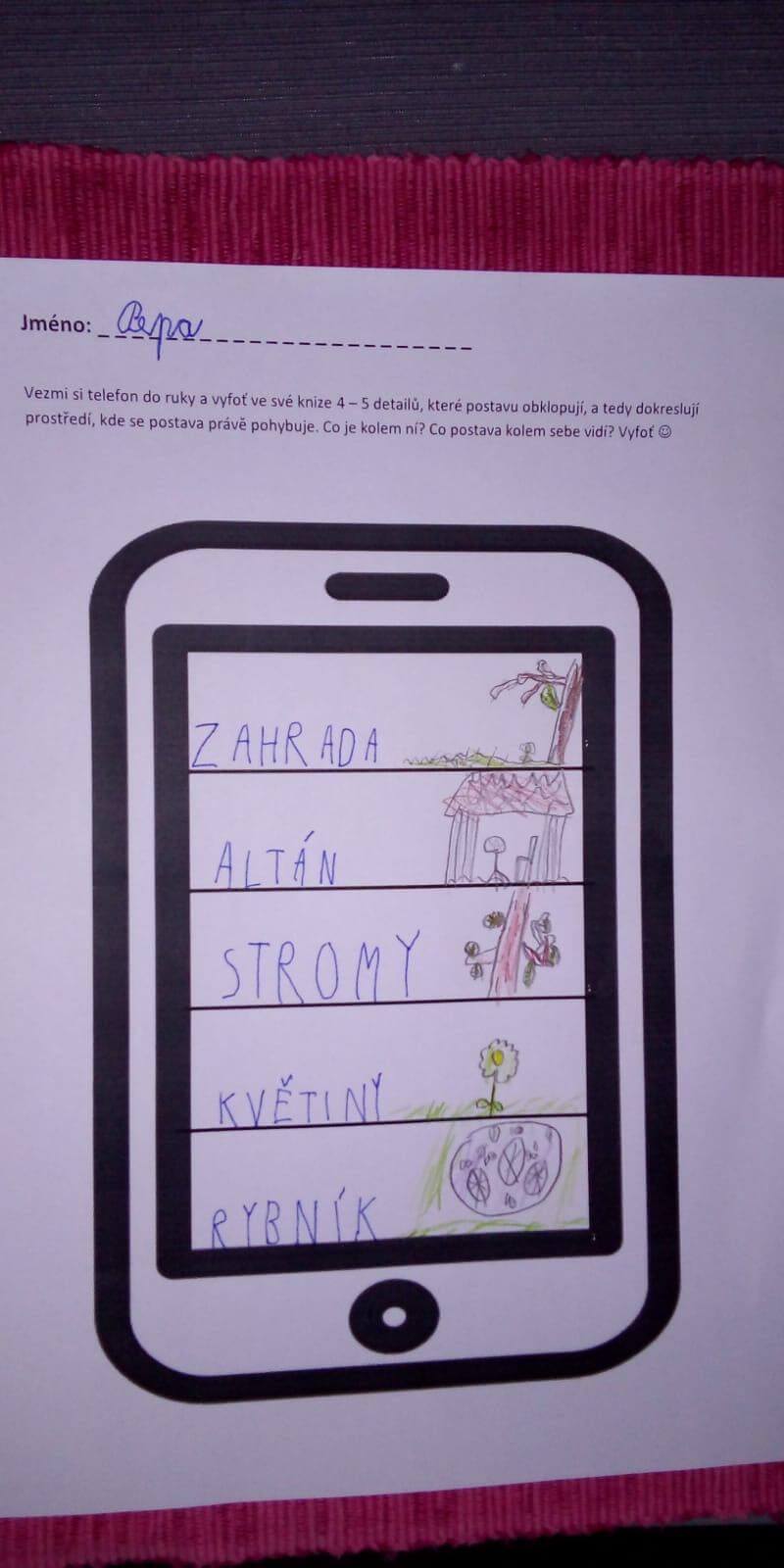 Takové prostředí se snaží každý autor vytvořit i pro svoji knižní postavu, o které si právě doma čteš. Budeš-li si více všímat, rychle porozumíš, které věci postavu při čtení obklopují, kudy třeba jde, co bere do ruky, co vidí kolem sebe. A právě to budeme dnes zkoumat.
