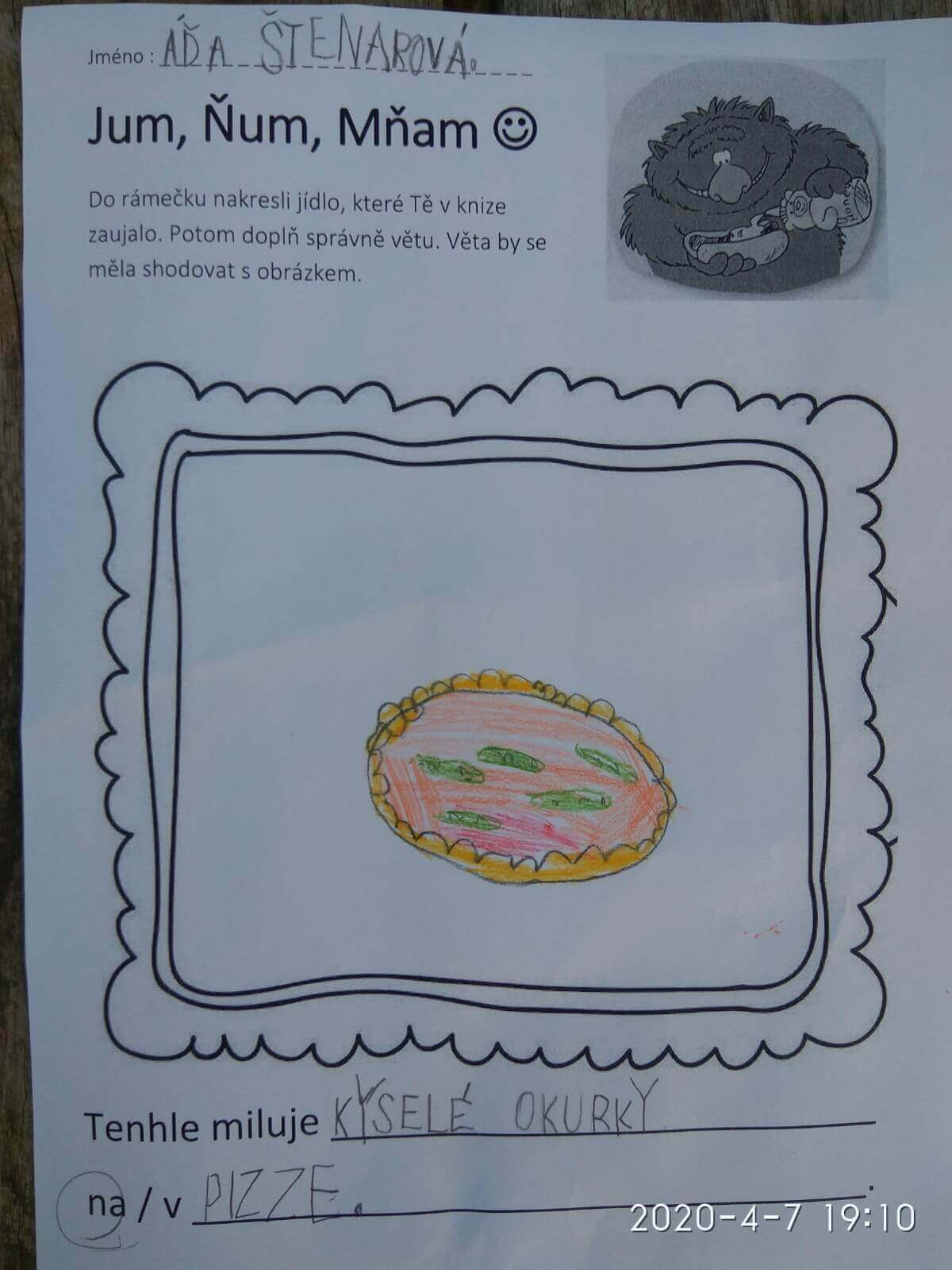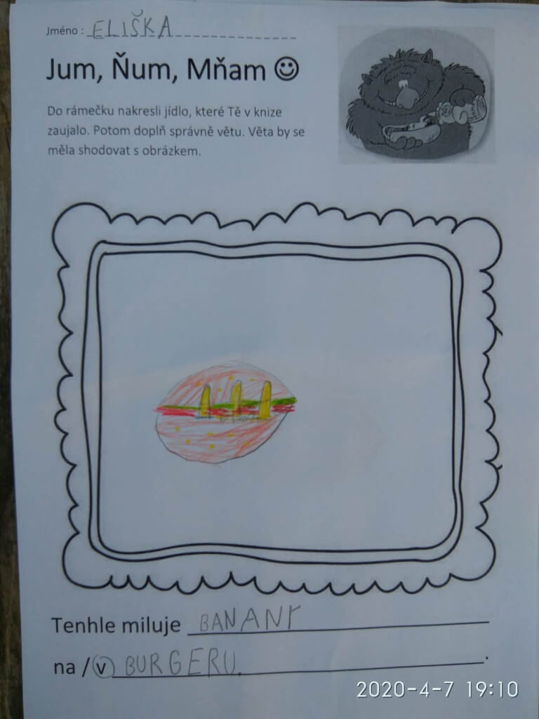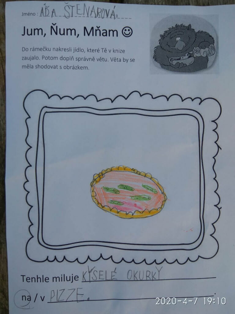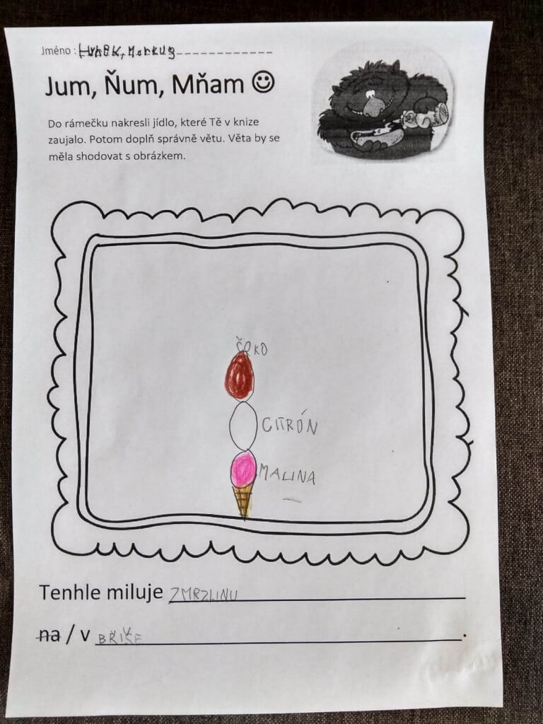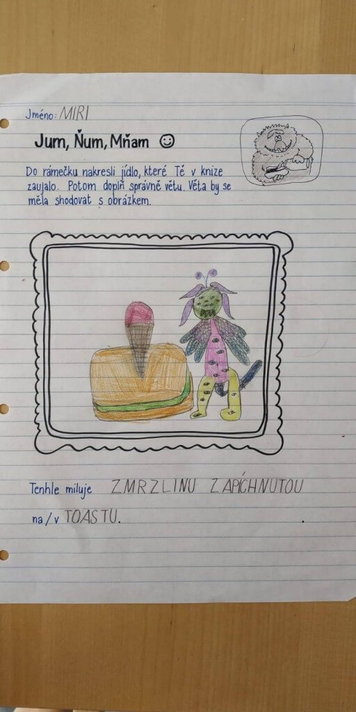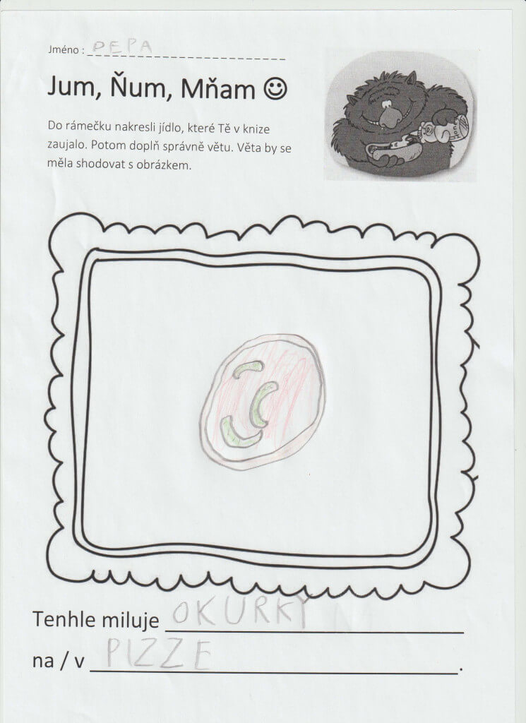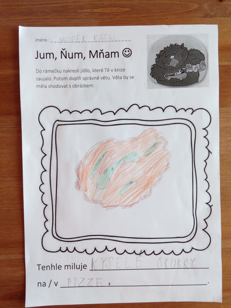 TIP : Koho by Jum, Ňum, Mňam rozvášnilo natolik, že by chtěl v práci pokračovat, vytvoří do deníku svoji vlastní kreaci famózního jídla. A doprovodí obrázkem.