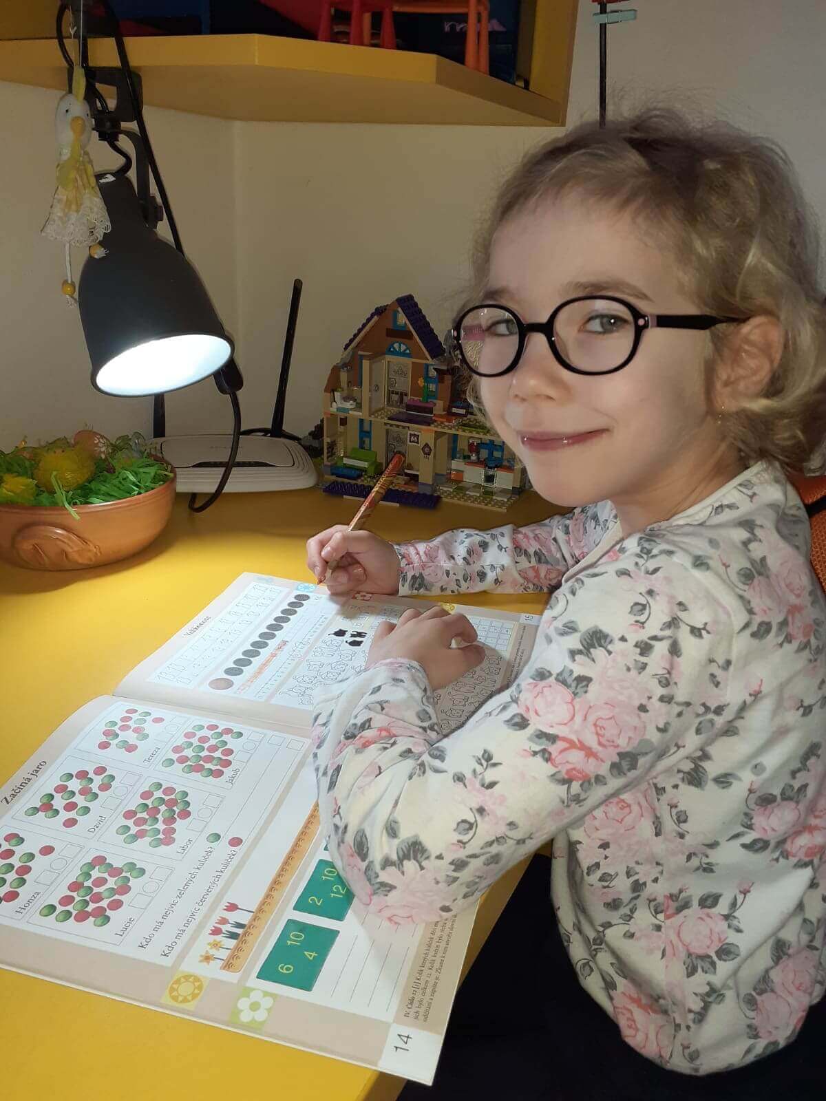 PS str. 14/ oranžová kytka – Porovnáváme čísla. Cvičení je náročné na pozornost a udržet orientaci očí ve změti míčků To není špatné trénovat:)
