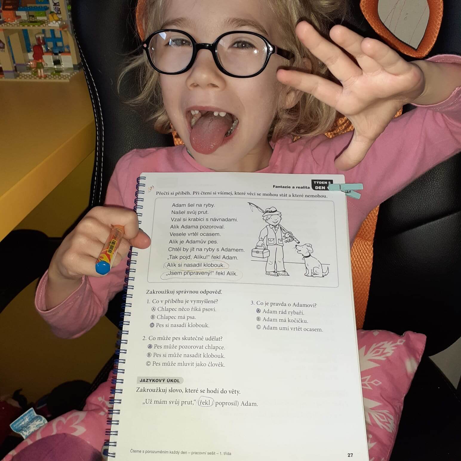 A pod tímto úhlem budeme číst text z PS str. 27 Budeme se soustředit, které věci se mohou stát, které nemohou a jsou tedy lidskou fantazií. A právě tyto věty, které se stát prostě nemohou, při čtení vybarvíme. Po přečtení uděláme úkoly za textem.
